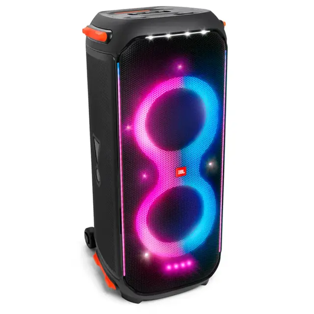 Estruturada com 800W de potência, juntamente com a poderosa tecnologia JBL Original Pro Sound, proporcionando uma alta qualidade sonora, longe de ruídos indesejados! Além disso, ele possui as luzes de LED coloridas, que podem ser controladas e personalizadas através do painel superior da caixa de som, agregando muito mais diversão para suas festas, deixando-as marcantes e inesquecíveis.